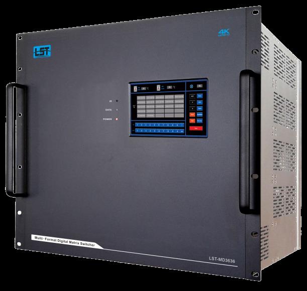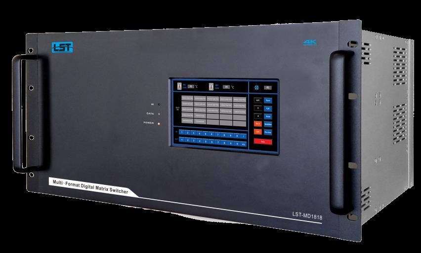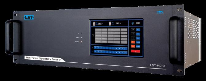 LST-MD系列多格式数字矩阵切换器是以高清数字交换系统作为平台, 交换核心的信号速率高达12.8Gbps,全面支持 4KX2K 超高清图像转换;数字信号运用尖端的图像无压缩传输技术,保证了图像信号的高保真输出。独特的人机交互智能控制系统设计,造就了新一代智能混合矩阵 。